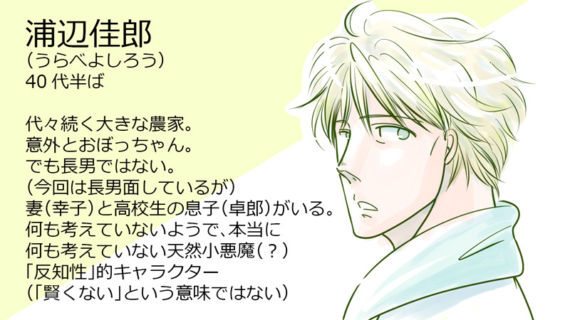 農家のおじさんとおじさんの息子の元担任の先生と、おじさんの家の近所で発掘作業をしている若い研究者の三角関係、ほのぼの不倫コメディです。