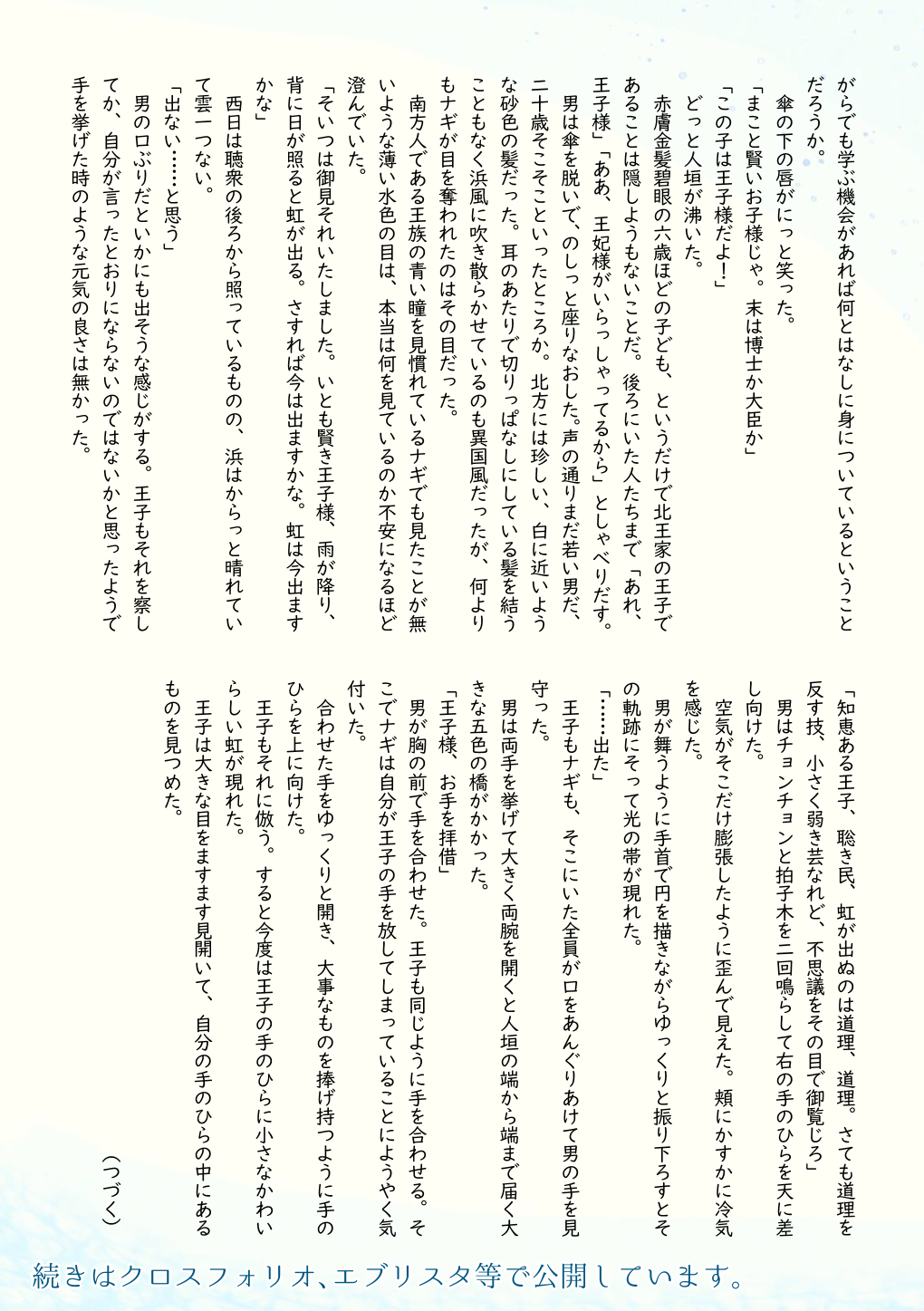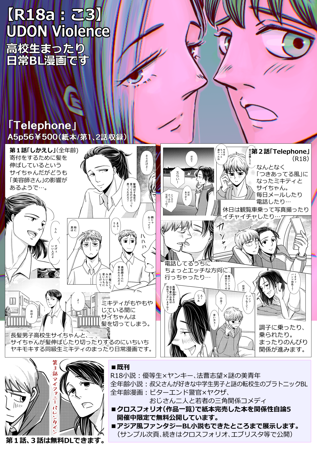 新刊は無い予定ですが、今書いている創作異世界時代劇ファンタジーBL小説が長髪男子だらけなので8月、11月と進んだとこまで賑やかしに置いておこうかなと思ってます。