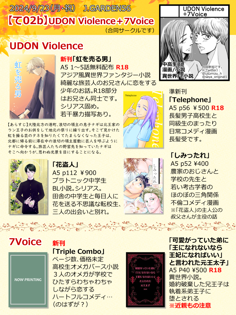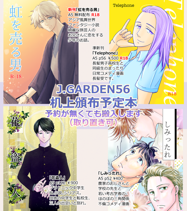 2024/9/23(月・祝) 東京ビッグサイト西3・4ホールで開催される、J.GARDEN56にサークル参加します。